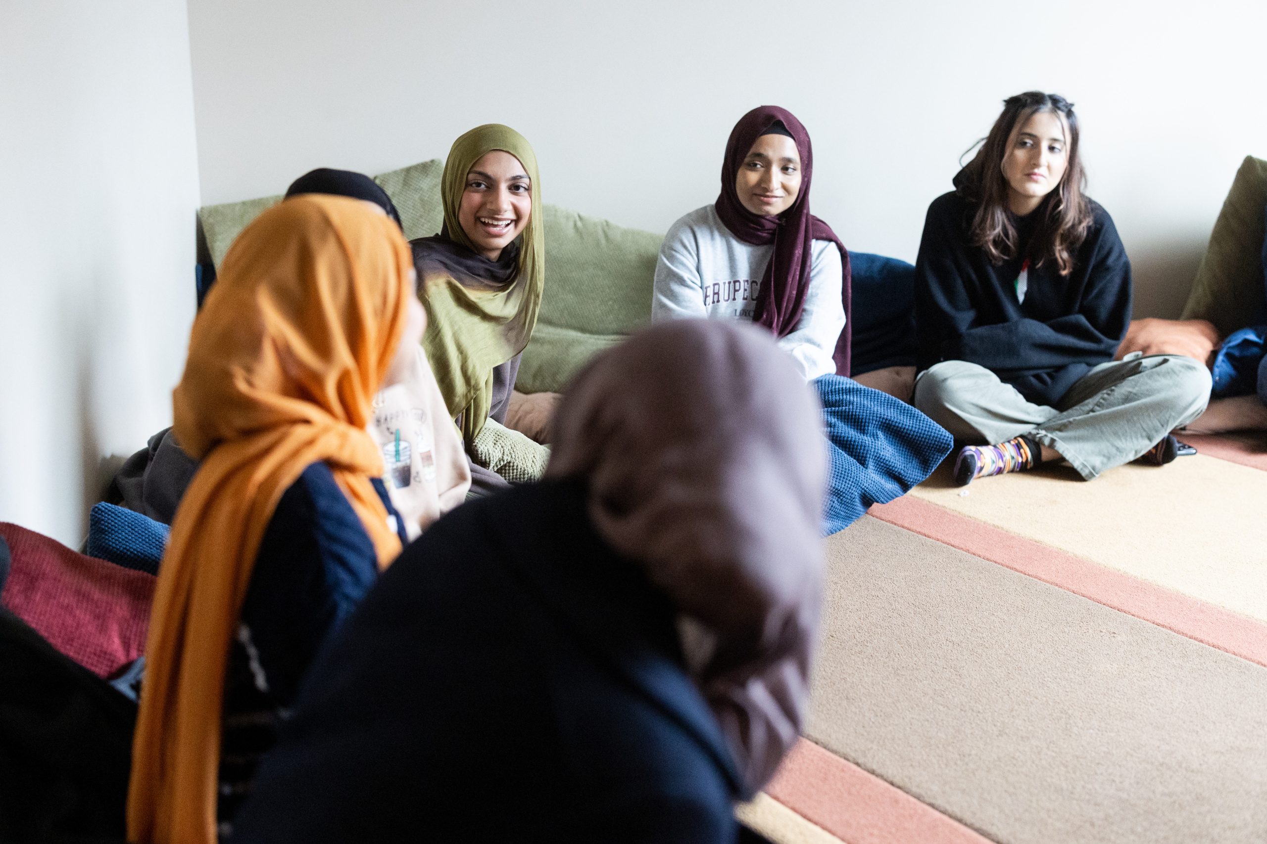 Seated on the floor of the musalla, Rehonoma Jahin (BS ’25), who grew up in Bangladesh, was talking with a group of her friends who had just finished praying. It was one of five prayers the Muslim computer science graduate performs daily as an act of submission and worship to God.