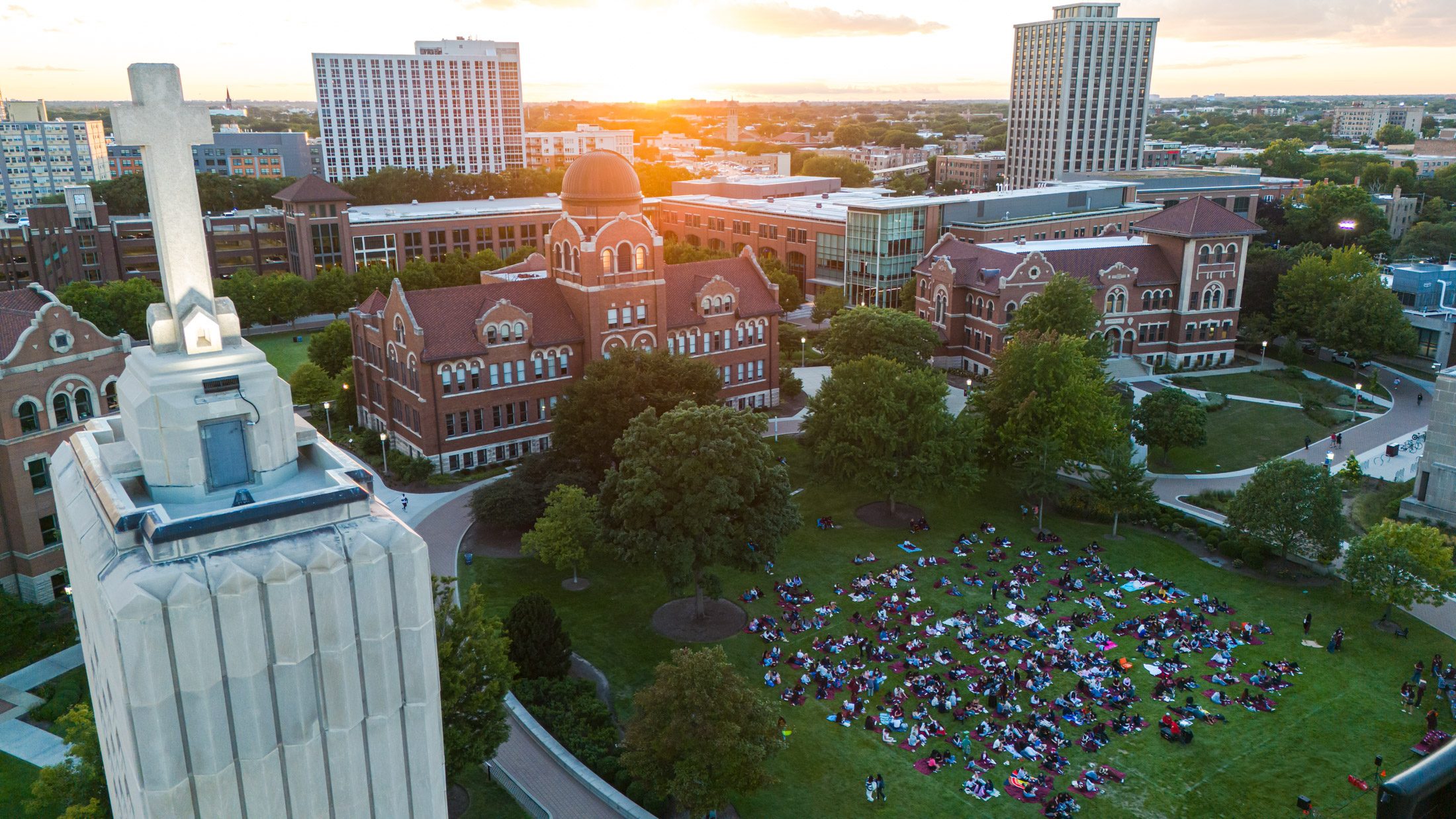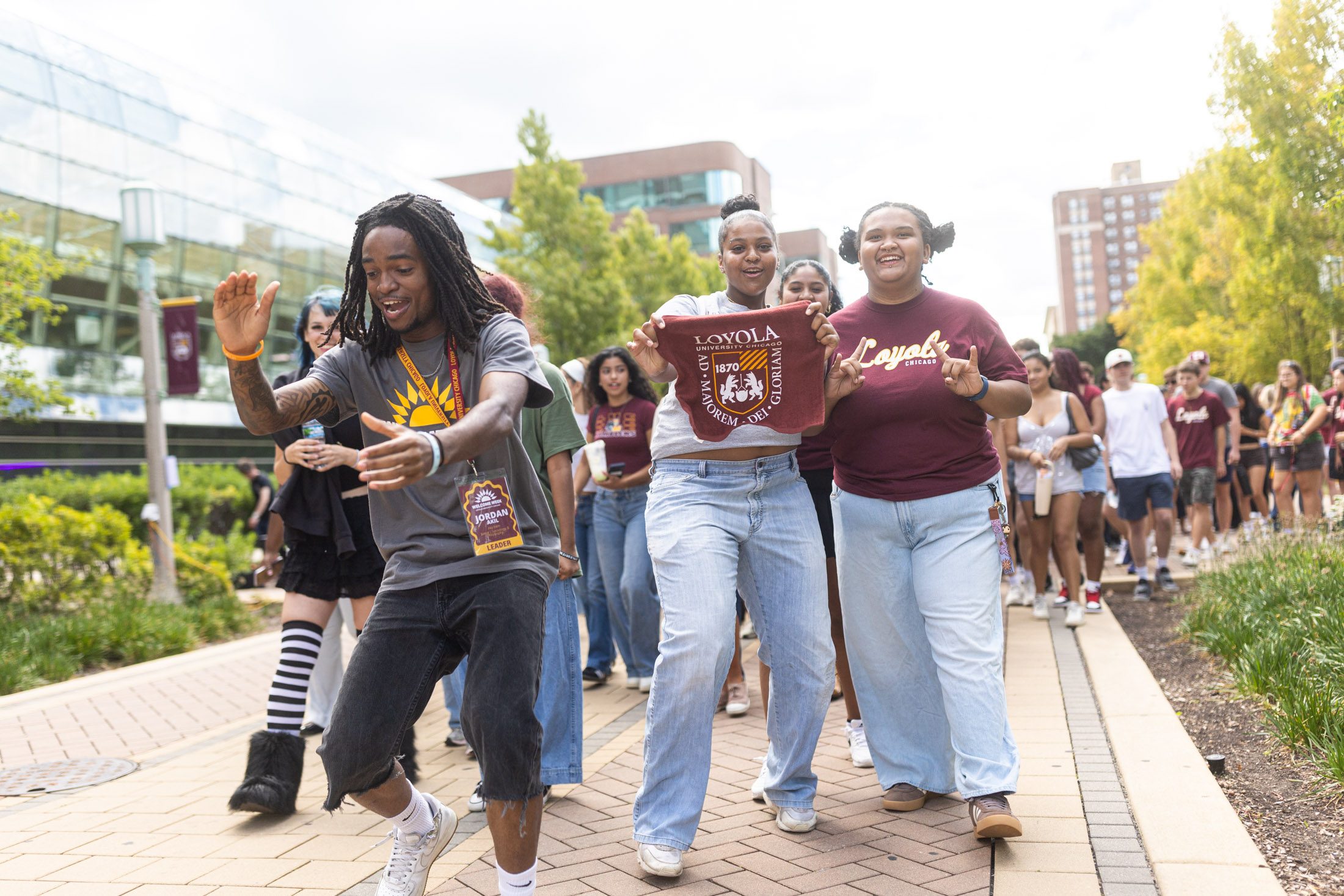 Welcome Week’s hallmark event, New Student Convocation, saw more than 3,000 incoming students gather on the East Quad and form the shape of the Loyola ‘L’ before walking through the green Cudahy Library doors to celebrate the start of their academic journey.